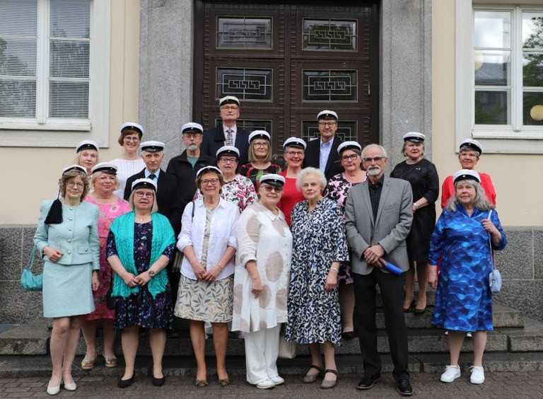 50 vuotta sitten kirjoittaneet julistettiin samalla kevään 2025 ylioppilasjuhlissa riemuylioppilaiksi. Tarinaa riitti ja monenlaisia muistoa palautettiin omiin ja toisten mieliin. Iloinen puheensorina ja nauru täytti koulumme käytävät, kun kiertelimme vanhassa opinahjossa uusia opetustiloja ihmettelemässä.