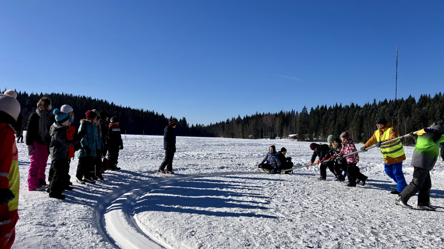 Napakelkka nitisi ja narskui! Alakoulun talviliikuntapäivä Ladun majalla.