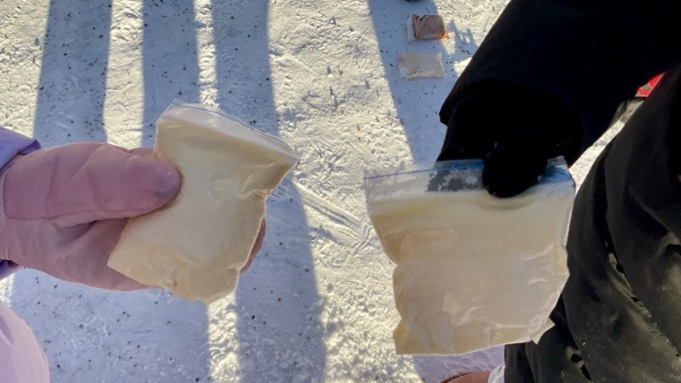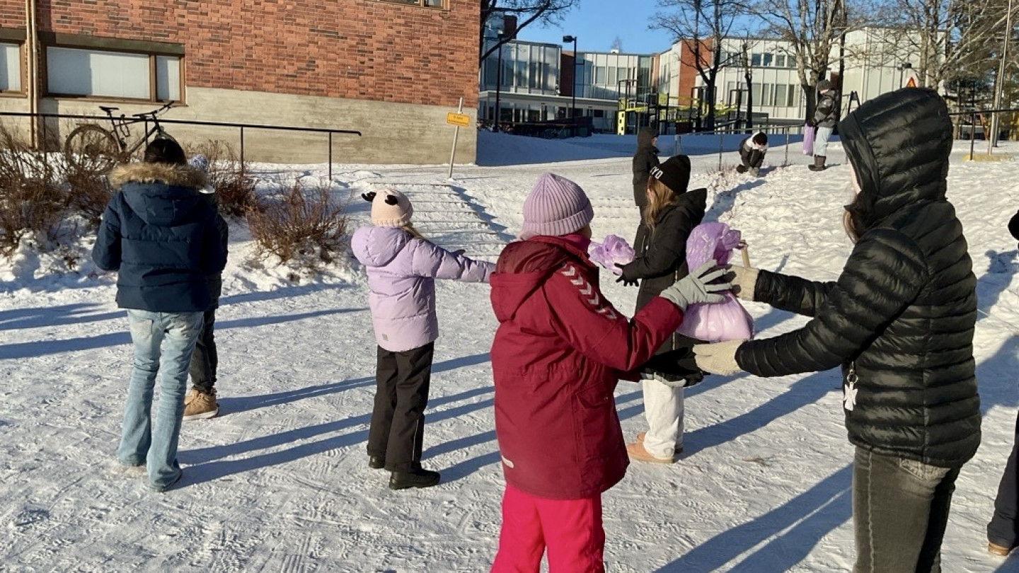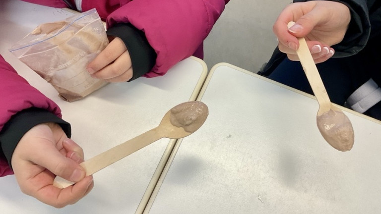 Ma 2.2. kummiluokat 3B ja 6B tutustuivat yhdessä veden ominaisuuksiin valmistamalla lumijäätelöä kirpeässä pakkassäässä. Aineksina mm. kermaa ja sokeria. Suolan lisääminen pakkaslumeen sai ihmeitä aikaan ja kummin kanssa yhteistyössä valmistui nopeasti maanantaipäivän yllätysherkku!