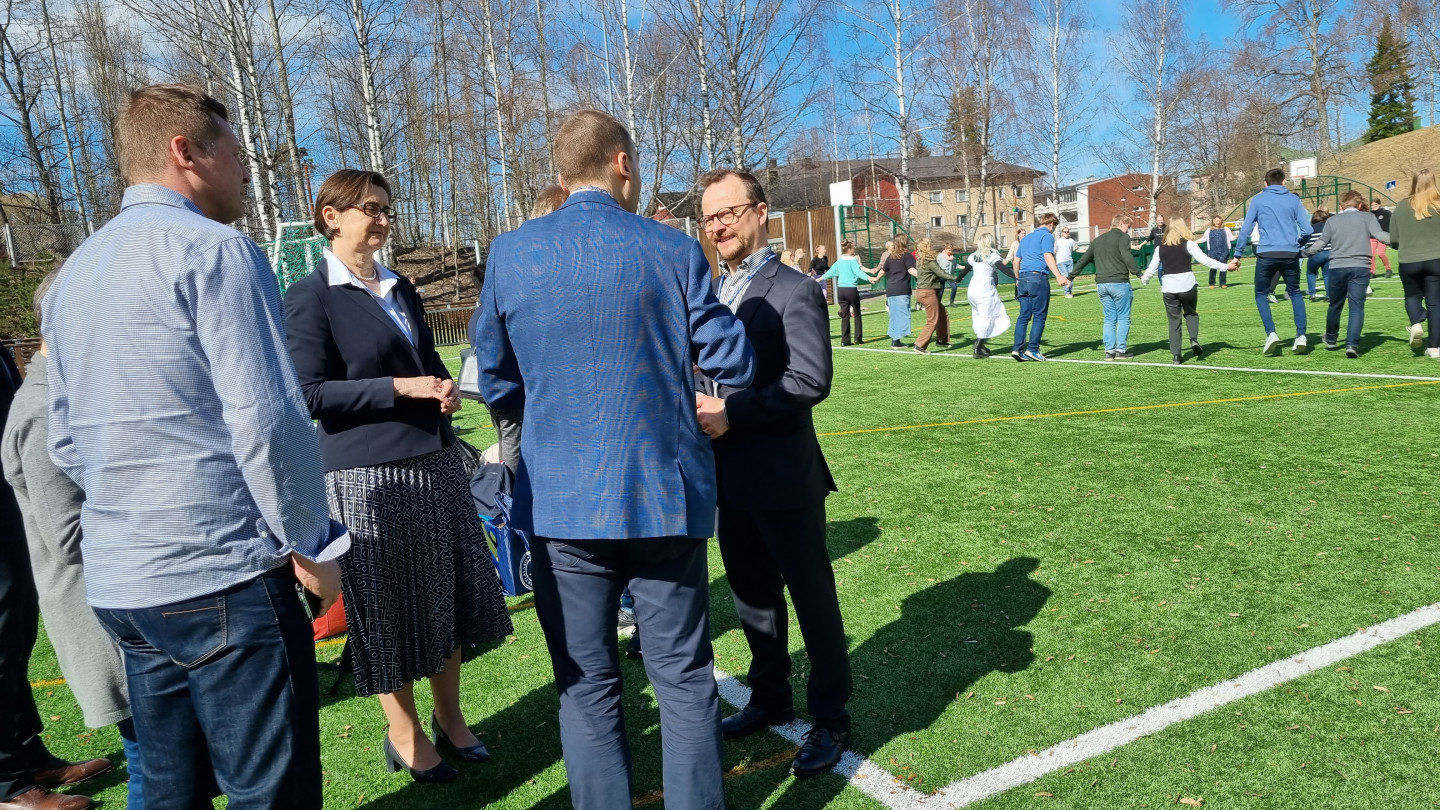 Perjantaina saimme yllättäen myös arvovieraan, kun Unkarin suurlähettiläs Klára Breuer saapui koululle. Hän pääsi seuraamaan pihalla unkarilaisten opiskelijoiden pitämää tanssituntia. Rytmikkään musiikin ja iloisen kannustuksen siivittäminä suomalaiset saivat tutustua perinteisiin unkarilaisiin tansseihin. Tanssien jälkeen suurlähettilään delegaatio pääsi koulukierrokselle lukion rehtorin ja opiskelijaoppaan johdolla.